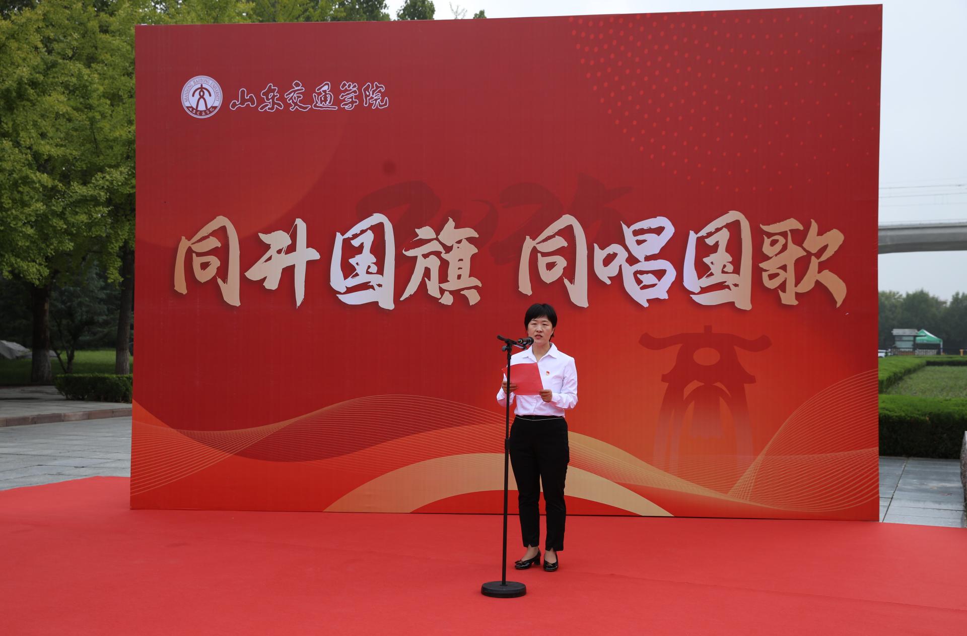 9月28日上午,学校在长清校区东门举行“同升国旗,同唱国歌”主题活动。学校党委领导班子成员王伟、李贞涛、王保群、徐静、王兴盈、刘庆波出席活动。
