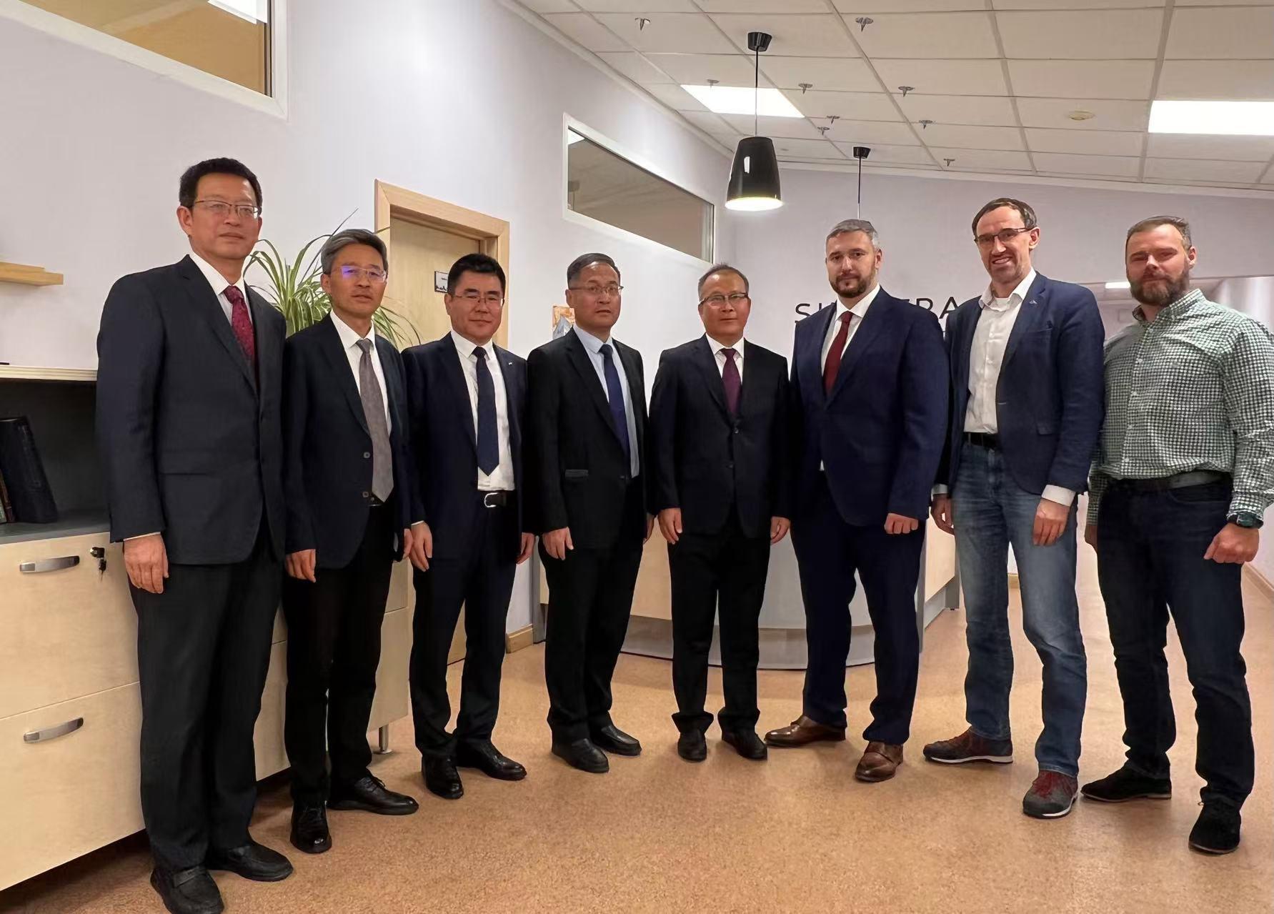 在白俄罗斯明斯克市,访问团专程拜会中华人民共和国驻白俄罗斯大使馆,与张汶川大使进行交流。双方就协助我校拓展白俄罗斯优质合作院校、加强高水平大学师生双向交流、科研国际合作、扩大白俄罗斯学生来鲁留学规模、巩固中白友城关系成果、共同打造“留学中国、学在山东”品牌等议题进行探讨。
