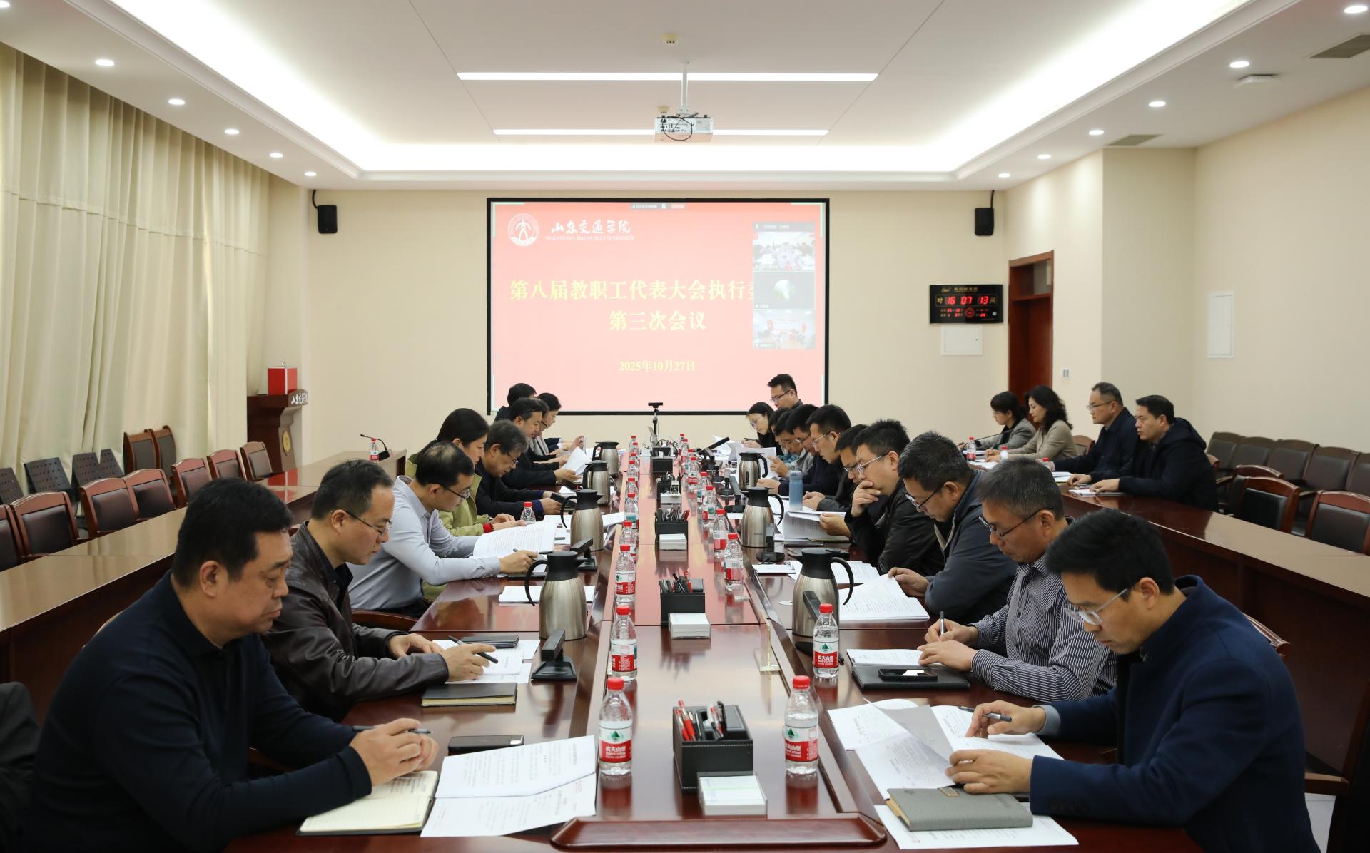 10月27日,学校在明德楼301会议室召开第八届教职工代表大会执行委员会第三次会议。学校党委副书记李贞涛,党委委员、副院长王保群出席。会议由李贞涛主持。