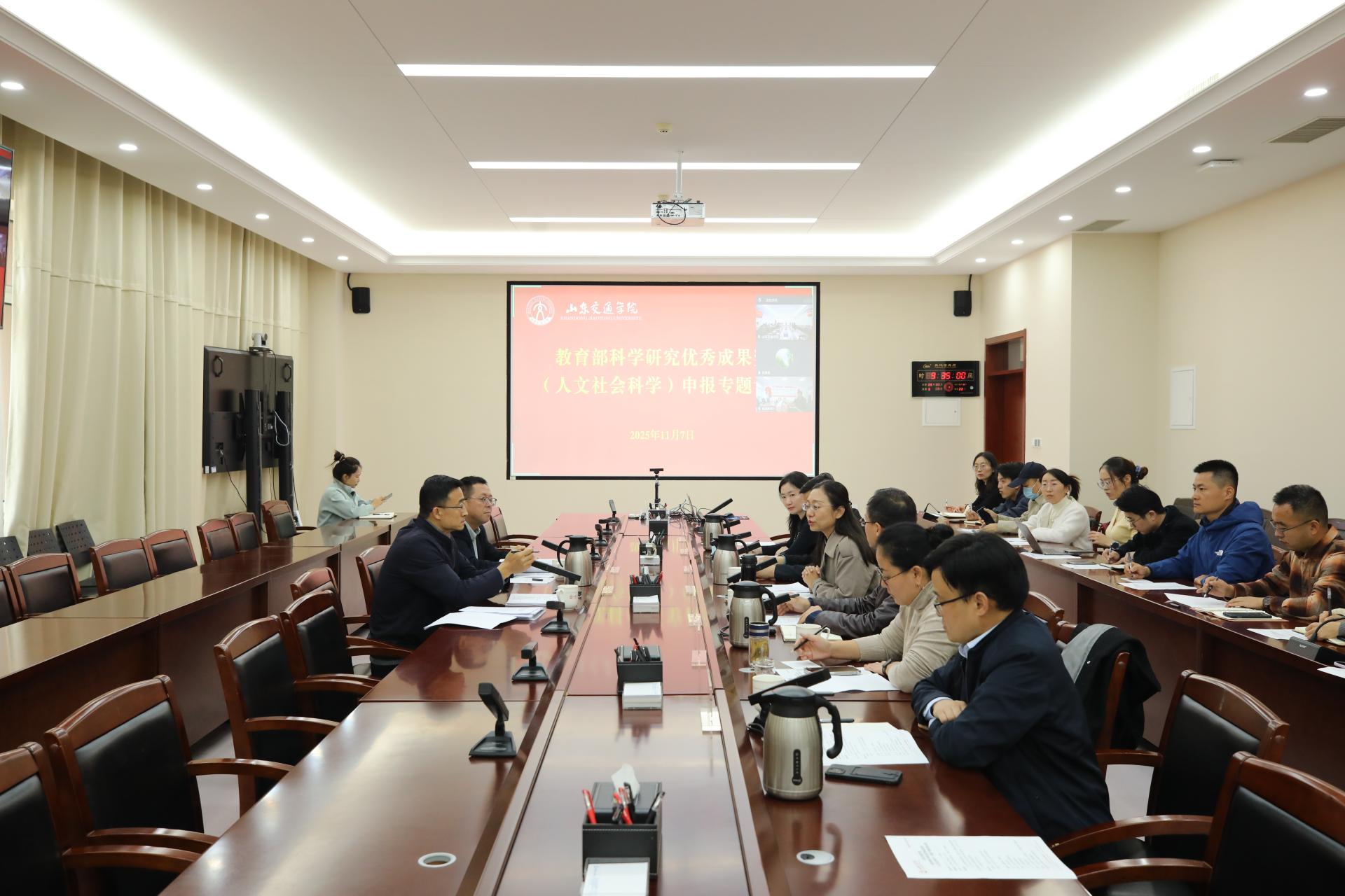 张萌萌指出,教育部科学研究优秀成果奖(人文社会科学)是衡量高校人文社科综合实力的重要标准,也是体现学校核心竞争力的关键指标,我们要依托学校行业特色优势,聚焦重大理论现实问题,组建跨学科科研团队,开展有组织科研,同时要加强与兄弟院校的合作交流,通过体系化成果培育与精准申报,力争实现重点突破,为学校科研工作高质量发展提供有效支撑。