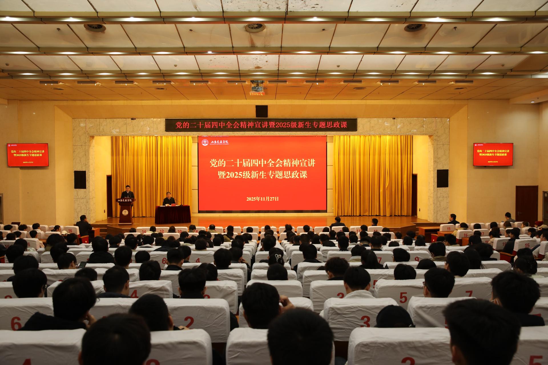 为深入学习贯彻党的二十届四中全会精神,切实推动全会决策部署转化为高质量发展实效,11月27日下午,山东高校宣讲团成员、学校党委书记王伟以“深入学习贯彻党的二十届四中全会精神,用青春奋斗书写交通强国建设新篇章”为题,为2025级研究生和部分本科生宣讲全会精神。学校党委委员、副院长李秀领主持。