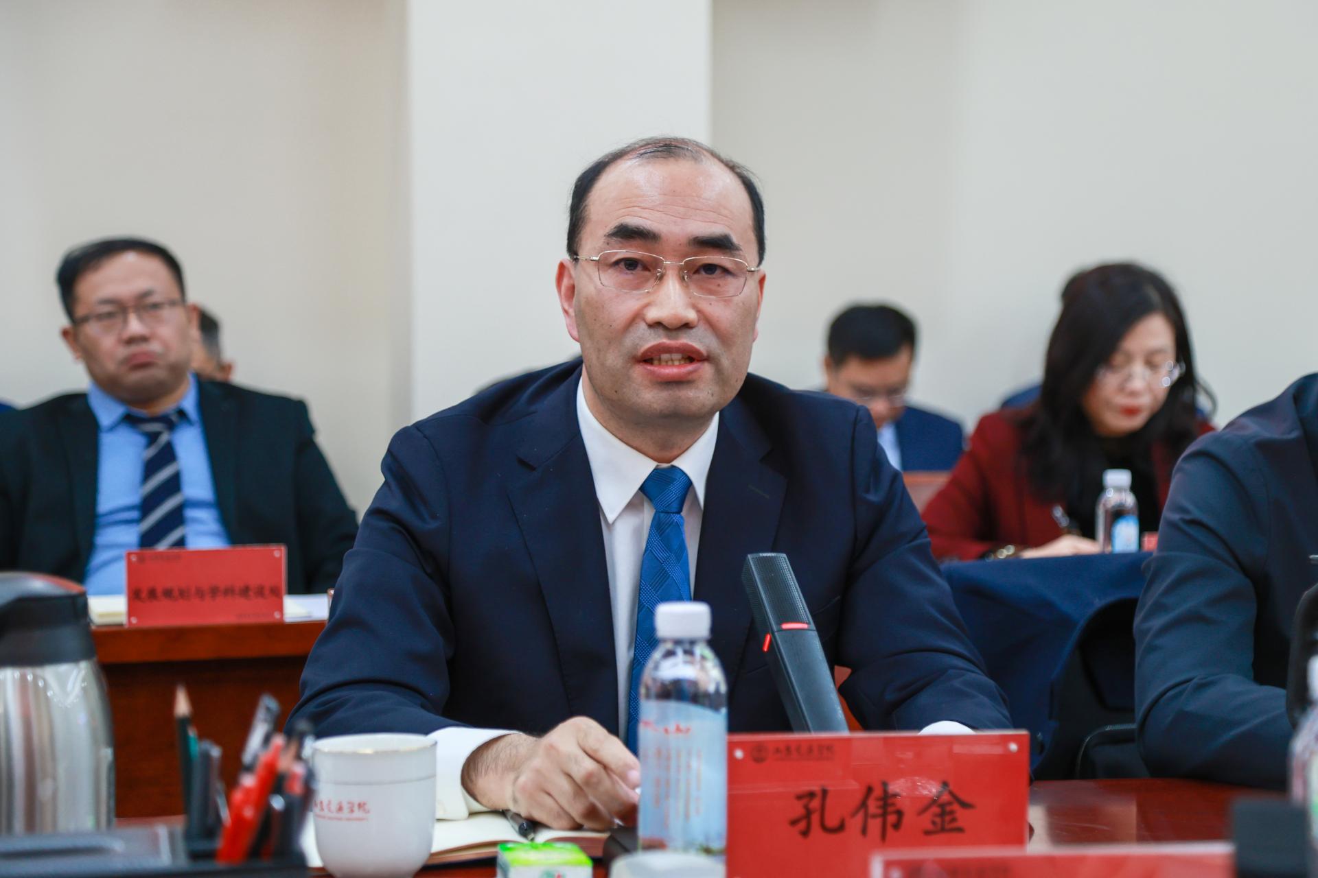 12月5日上午,学校在长清校区明德楼301会议室召开新一轮本科教育教学审核评估专家意见交流会。审核评估专家组组长、长春工业大学党委副书记、校长付跃刚,专家组成员潍坊学院党委副书记、校长王霞,北京交通大学原副校长张星臣,大连海事大学原副校长刘正江,北京理工大学珠海校区常务副校长栗苹,枣庄学院党委委员、副校长安涛和华东理工大学校督导组副组长徐志珍,专家组项目管理员、济南大学教务处副处长兼教学质量与评估办公室副主任张杰,专家组秘书、济南大学教务处教学评估科科长唐柯函和山东航空学院教务处教学研究科科长王守龙出席。山东省教育厅高等教育处副处长、二级调研员魏伟,山东教育社教育评估与质量监测中心干部张英慧,学校党委领导班子成员王伟、孔伟金、李贞涛、刘世杰、王保群、李秀领、徐静、王兴盈出席。会议由付跃刚主持。