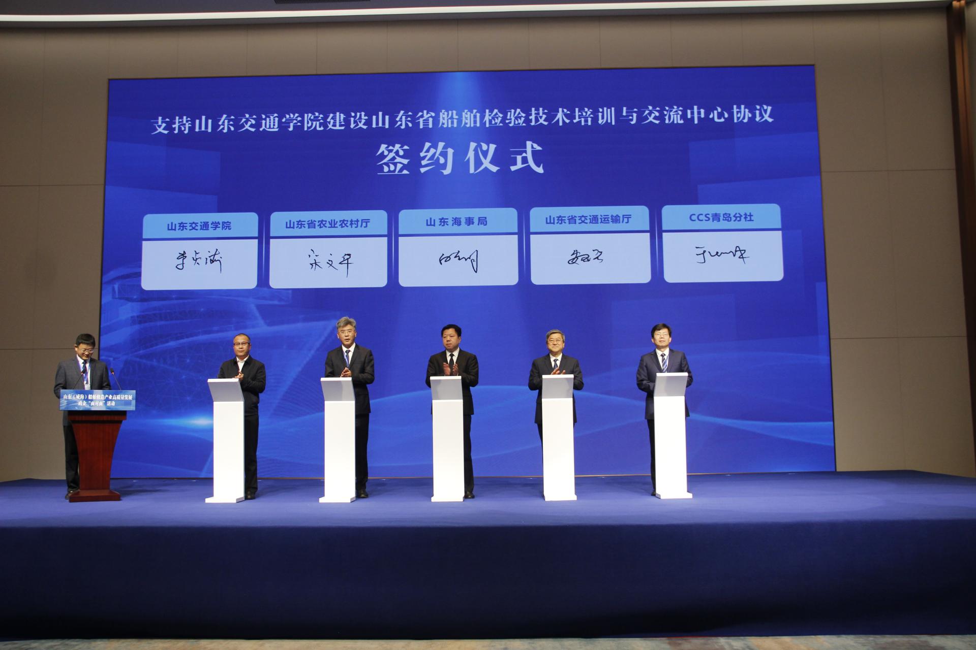 本次活动以“高质量检验 高水平安全”为主题,聚焦新技术检验、新能源船舶应用与检验、智能修造技术推广、金融工具赋能等关键领域展开深入交流,为产业发展积极建言献策。活动现场,山东海事局、省交通运输厅、省农业农村厅、中国船级社青岛分社4家单位与我校共同签署《支持山东交通学院建设山东省船舶检验技术培训与交流中心协议》,李贞涛代表学校完成签约。