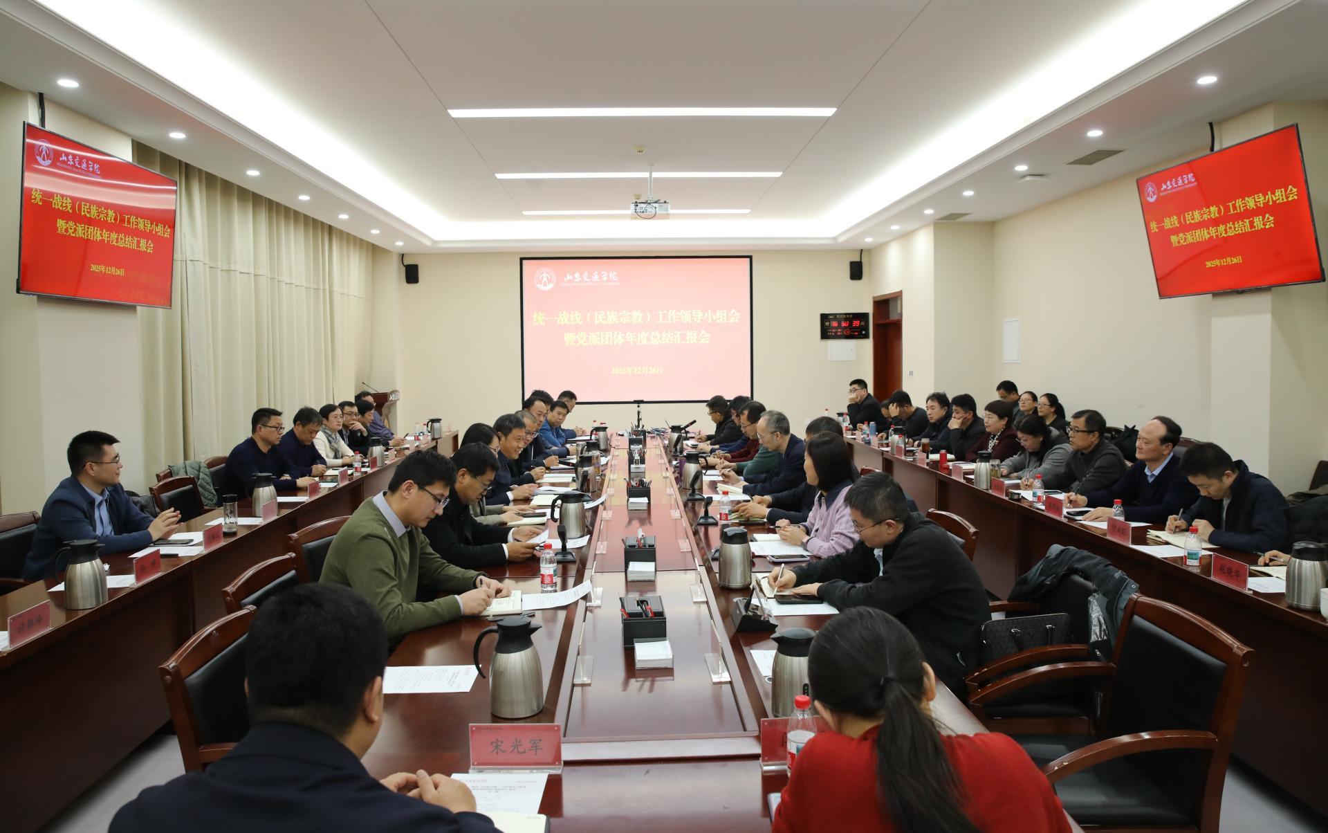12月26日,学校在长清校区明德楼301会议室召开统一战线(民族宗教)工作领导小组会暨党派团体年度总结汇报会。学校党委书记王伟,党委副书记李贞涛,党委委员、党委组织部部长王兴盈,党委委员、党委统战部部长刘庆波出席。会议由李贞涛主持。