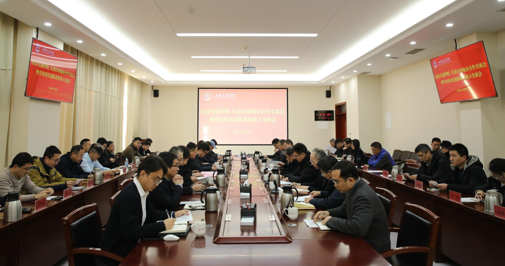 1月8日,学校举办校地企合作交流会暨科技创新成果展示交流会。长清区委常委、副区长张广大,济南长清大学城党工委委员、管委会副主任张志华一行40余人参加活动。学校党委书记王伟,党委委员、副院长王保群在长清校区明德楼306会议室会见客人。会议由产教融合办公室主任于翊广主持。