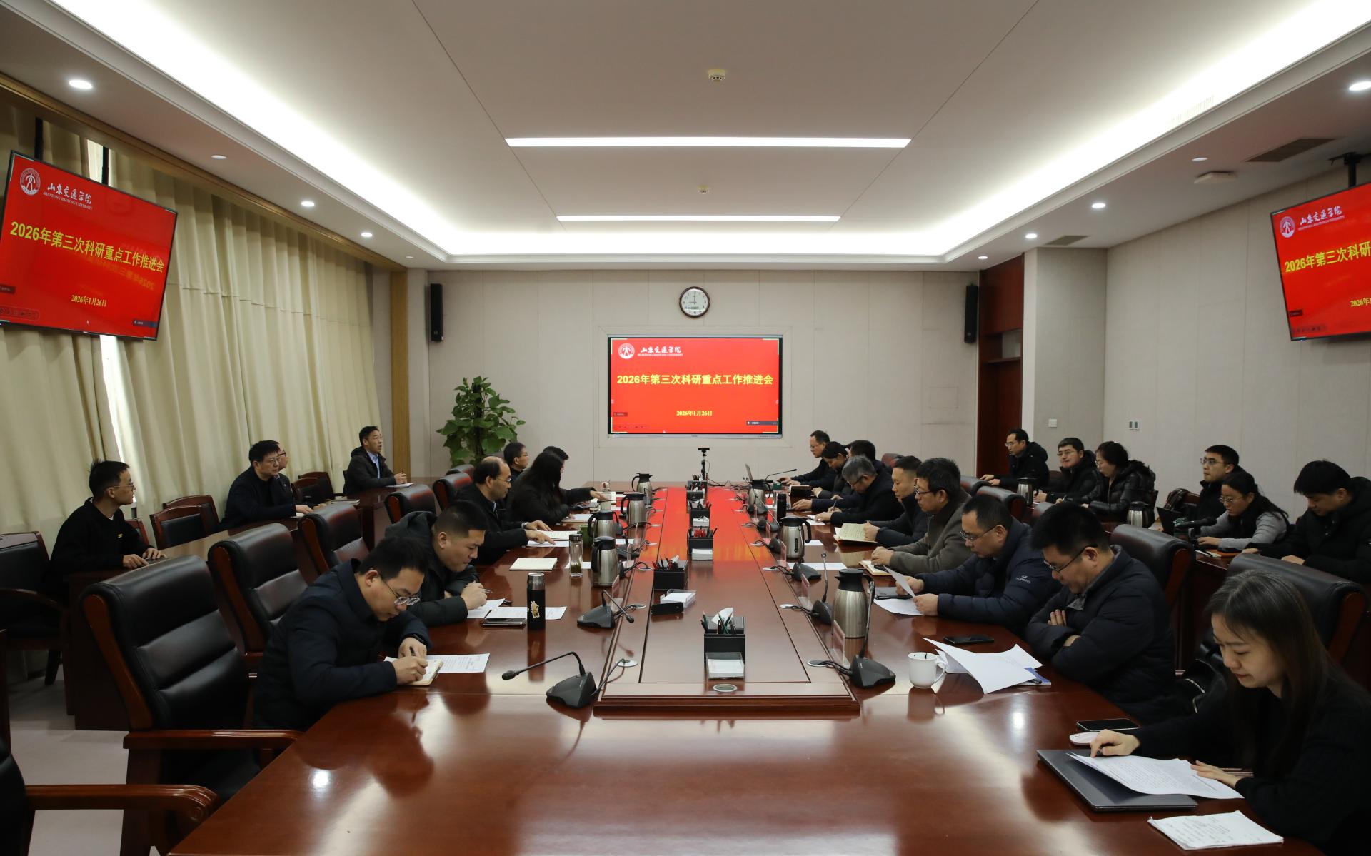 1月26日,学校在长清校区明德楼303会议室召开2026年第三次科研重点工作推进会。学校党委副书记、院长孔伟金,党委委员、副院长张萌萌出席。会议由张萌萌主持。
