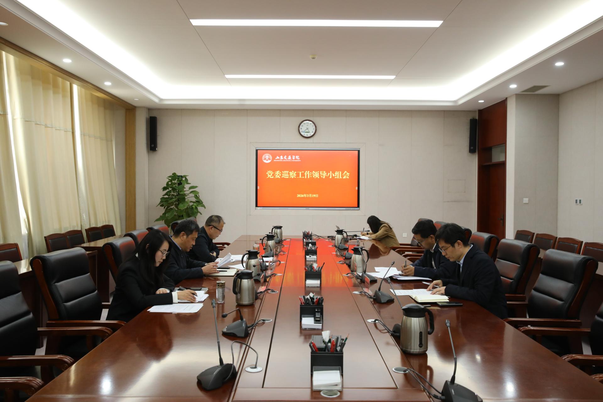 3月19日下午,学校在长清校区明德楼303会议室召开党委巡察工作领导小组会议。学校党委书记、党委巡察工作领导小组组长王伟,党委副书记、党委巡察工作领导小组副组长李贞涛,党委委员、党委组织部部长、党委巡察工作领导小组成员王兴盈出席。会议由王伟主持。
