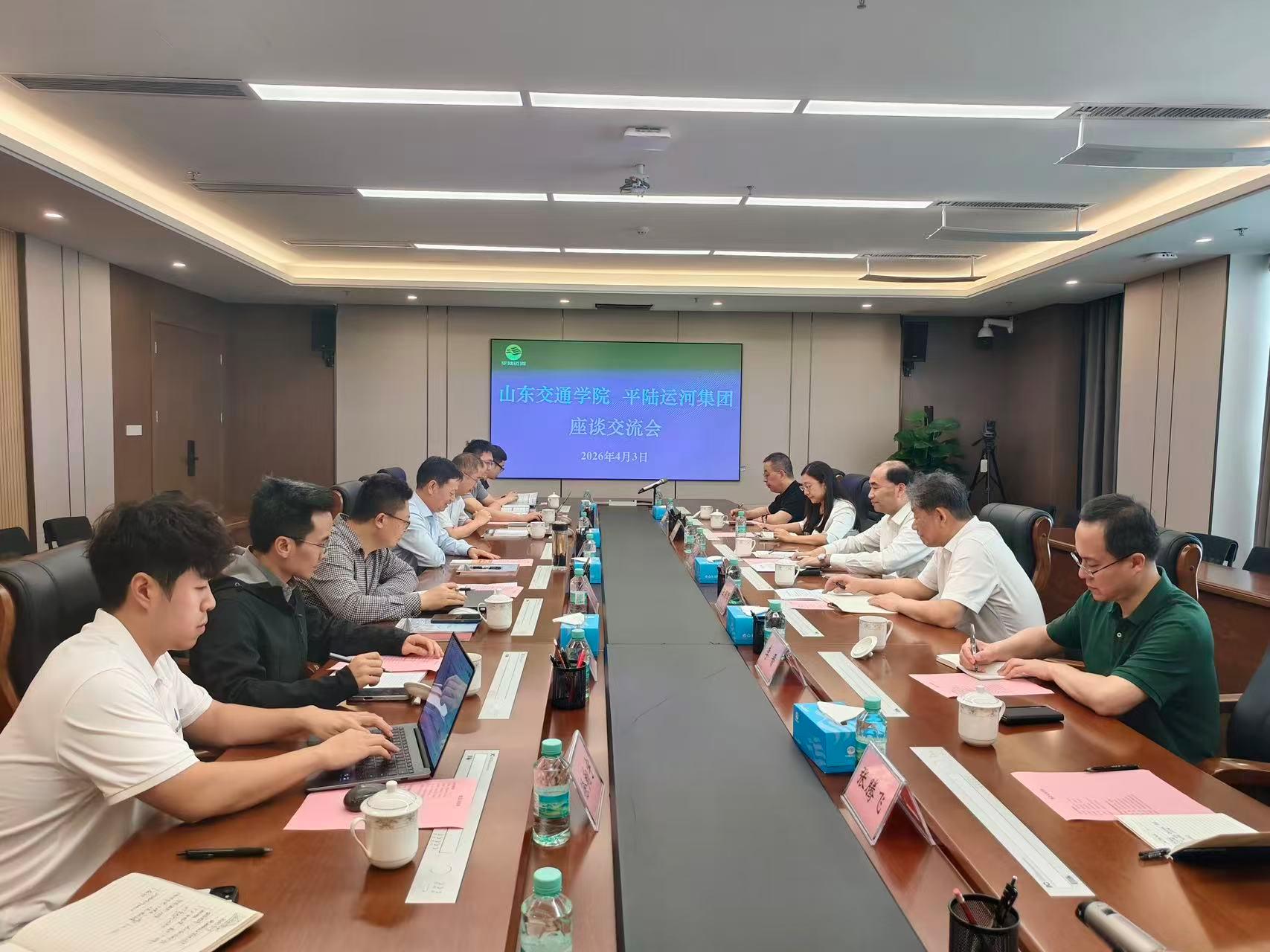 在平陆运河集团有限公司,孔伟金一行与集团党委书记、董事长王劼耘等进行座谈。孔伟金介绍了学校在港口航道、智慧交通、物流管理等领域的学科专业布局和人才培养特色。他表示,平陆运河是“国之大者”,山东交通学院作为特色鲜明的交通类高校,将主动对接运河建设与运营中的实际需求,共同破解工程中的关键技术难题,为这一世纪工程贡献“交院智慧”。王劼耘表示,平陆运河建设任务重、技术难点多,迫切需要高校的科研和人才支撑。希望山东交通学院深度参与运河建设与运营中的课题研究,推动产学研用深度融合,共同服务国家重大战略工程。座谈会后,孔伟金一行还实地参观了平陆运河项目建设现场,深入了解工程进展与技术创新实践。