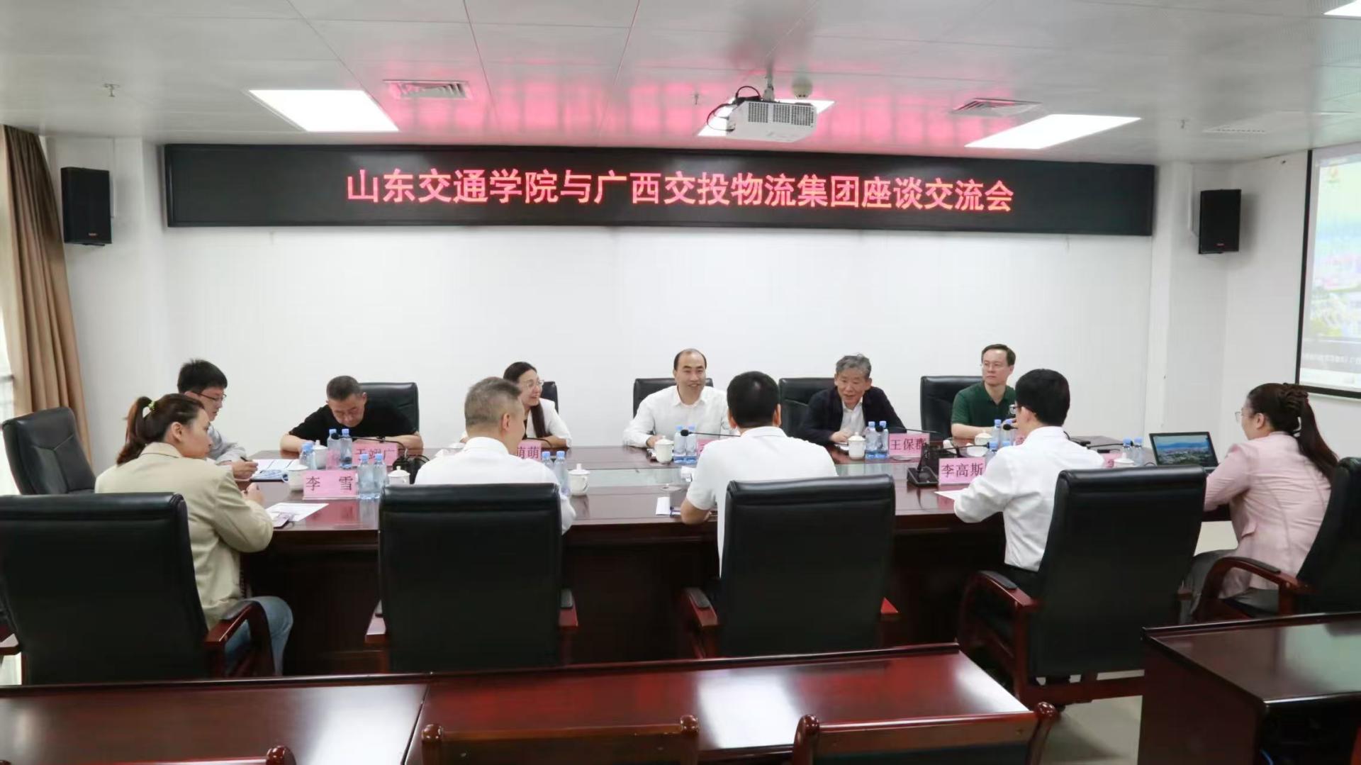 在广西交投物流集团有限公司,孔伟金一行与公司党委书记、董事长黄新颜等进行座谈。孔伟金简要介绍了学校的发展历程和办学现状,并指出,学校现已发展成为以交通为特色、多学科协调发展的应用型高校,在综合物流与供应链管理领域,学校拥有扎实的科研积累和丰富的教学资源,希望以此次交流为契机,推动学校与广西交投物流在科研平台共建、实习实训基地共享等方面实现实质性突破,共同服务交通强国战略。黄新颜表示,山东交通学院办学特色鲜明,学科布局与公司发展战略高度契合。希望双方在智慧物流平台建设、供应链优化及人才定向培养等方面深化合作,共同探索校企协同发展的新模式。双方就智慧物流、供应链管理等领域的人才联合培养、技术研发及成果转化等进行深入交流。