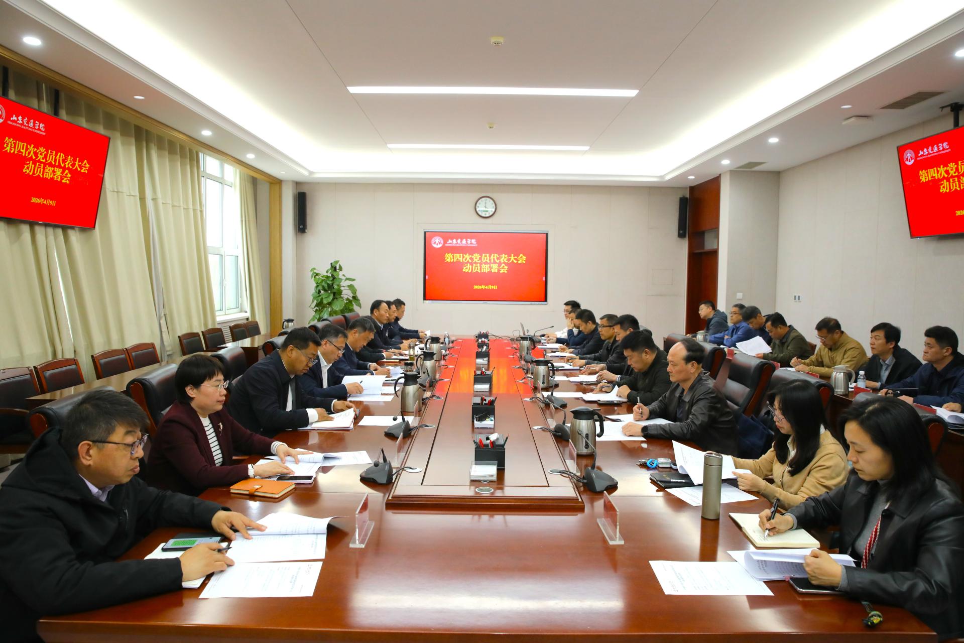 4月9日下午,学校在长清校区明德楼303会议室召开中国共产党山东交通学院第四次党员代表大会动员部署会。学校党委领导班子成员王伟、聂法良、刘广东、刘庆波出席。会议由党委书记王伟主持。