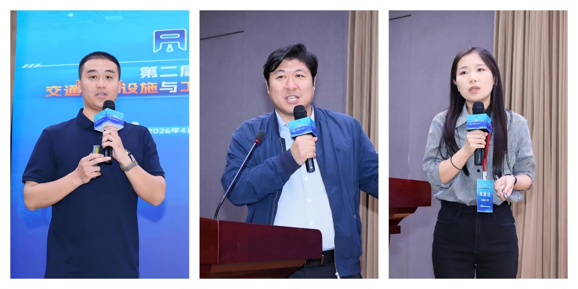 在特邀报告环节,山东交通学院副教授、桥梁工程系系主任赵鹍鹏,东南大学副教授、桥梁工程系副主任朱彦洁,泰山学院讲师柳泓哲等青年专家,围绕具体工程场景的技术创新与产业应用,深入探讨了桥梁施工与养护、绿色路面材料以及工程检测智慧化等关键议题。大会期间,来自清华大学、广西大学、海南大学、山东交通学院、南京工业大学、南京理工大学、天津市勘察设计院集团有限公司等单位的13位青年学者,围绕结构仿真、智能监测、新材料性能、装配式结构、地铁车站抗震及轨道交通优化等方向展示了最新研究成果。